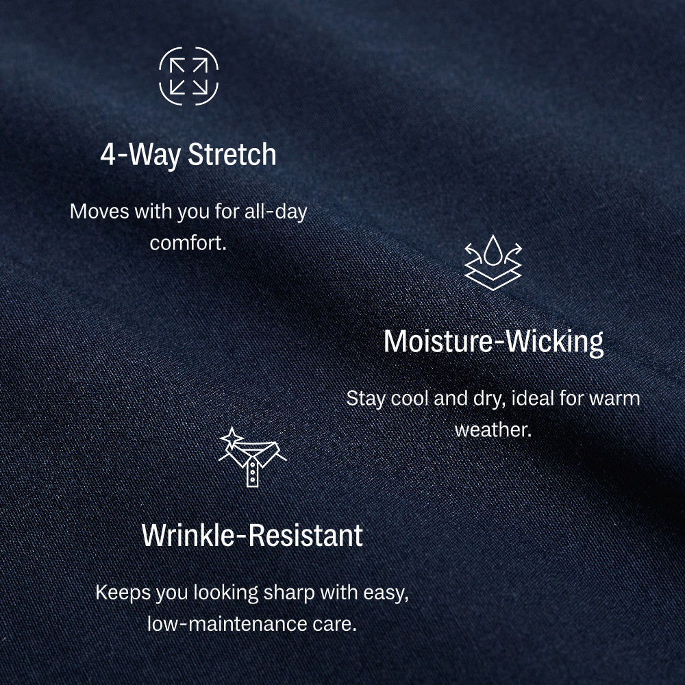 Experience true comfort and durability with premium 4-way stretch woven fabric made with BounceBack™ technology.