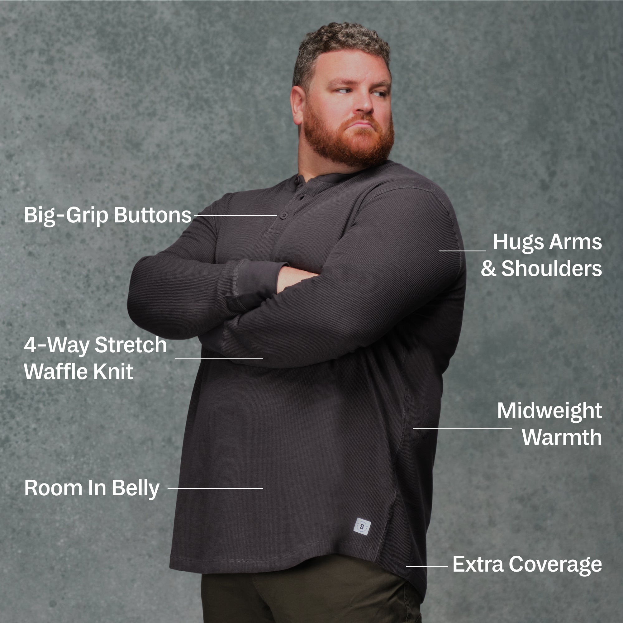 Designed with rubberized buttons and premium waffle-knit fabric, this long sleeve Henley adds a touch of style without sacrificing comfort or coverage.